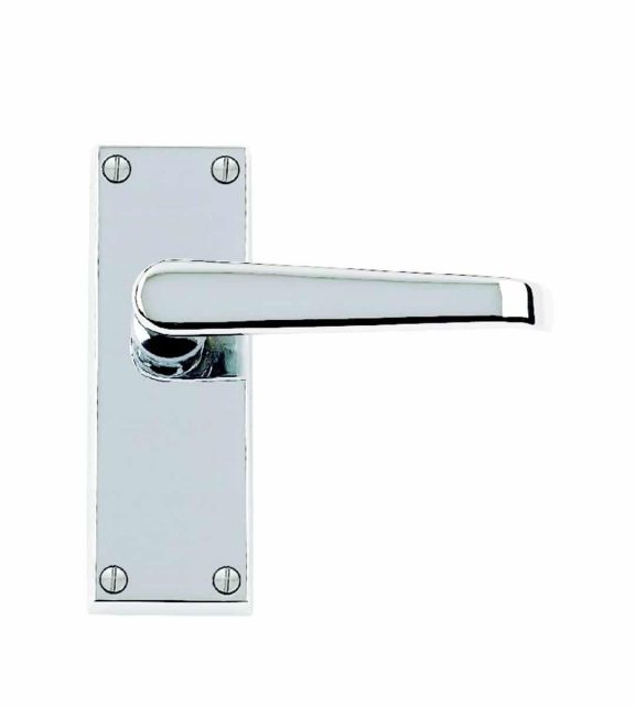 Victorian Flat Polished Chrome Door Handle Rectangular Back Plate